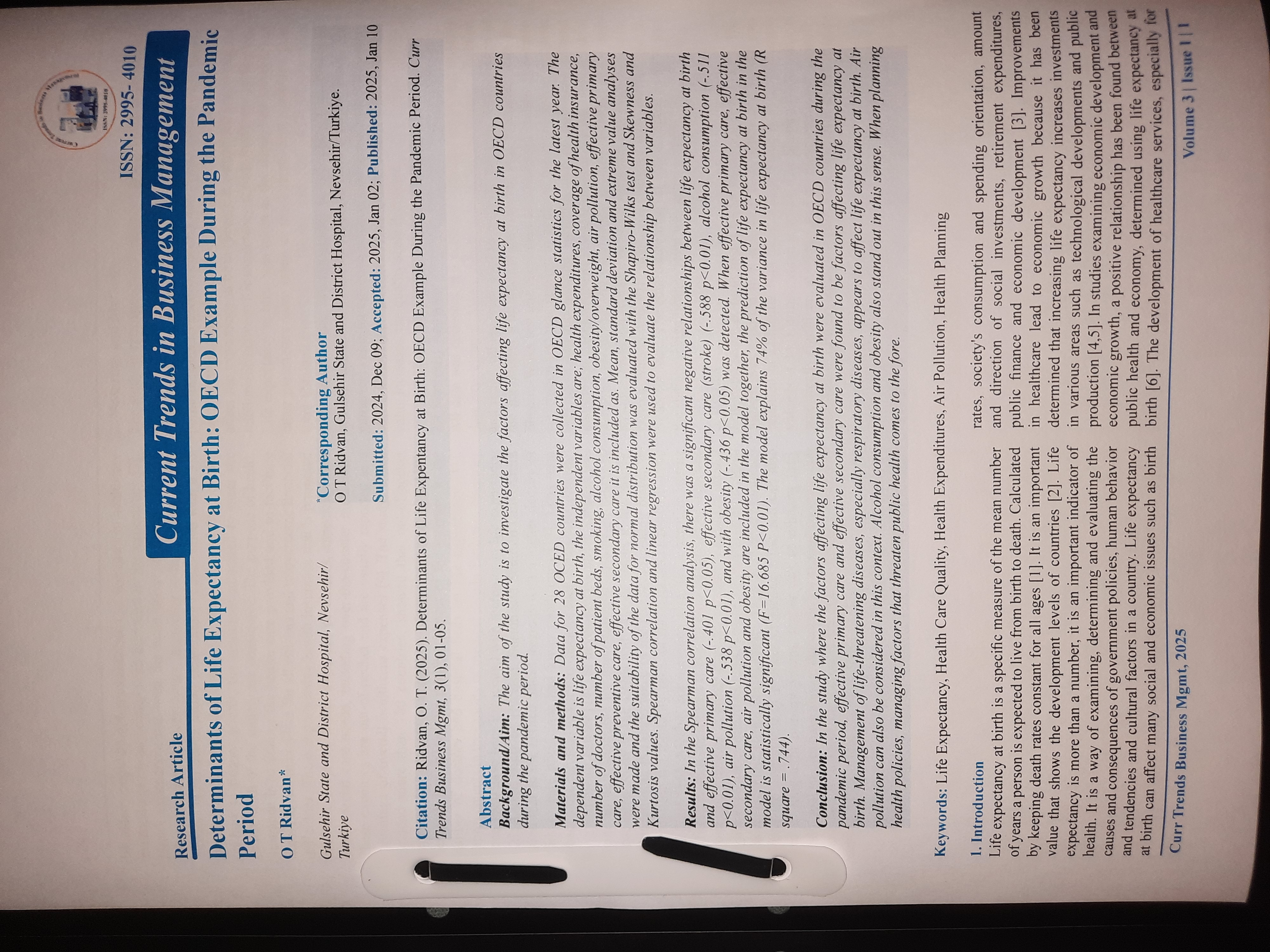 Determinants Life Expectancy at Birth:OECD Example During the Pandemic Period