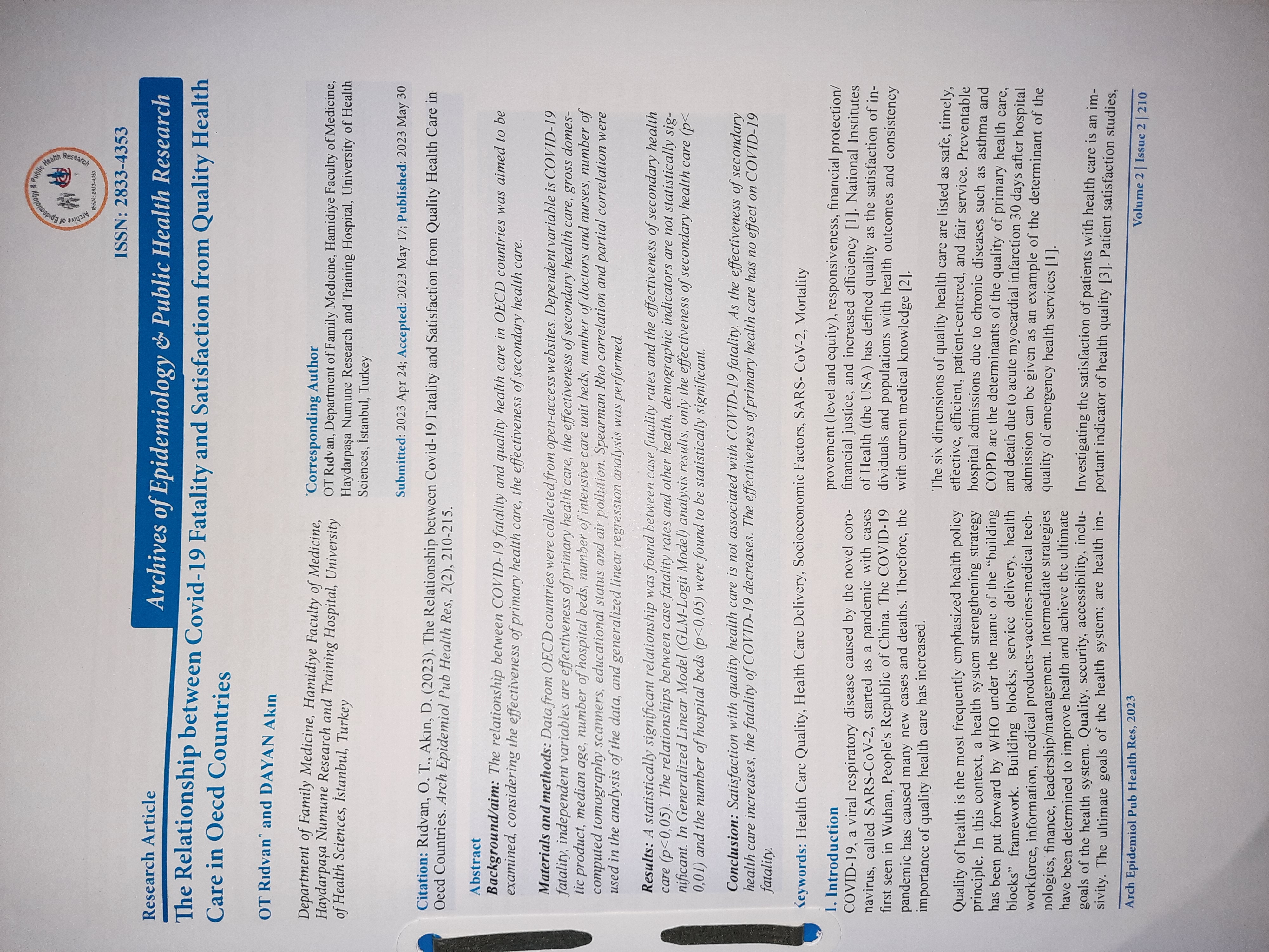 The Relationship Between Covid-19 Fatality and Satification from Quality Healthcare in OECD Countries